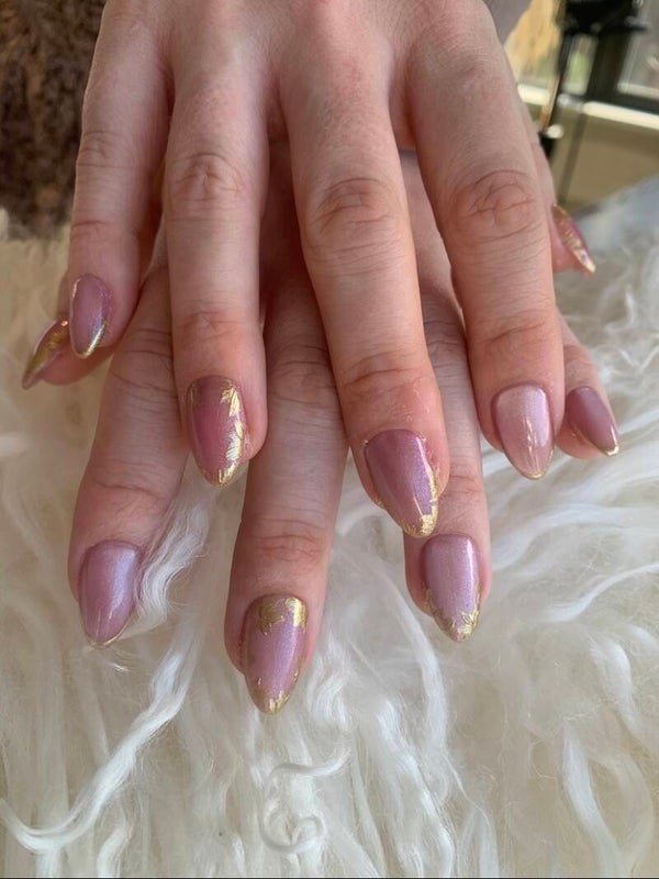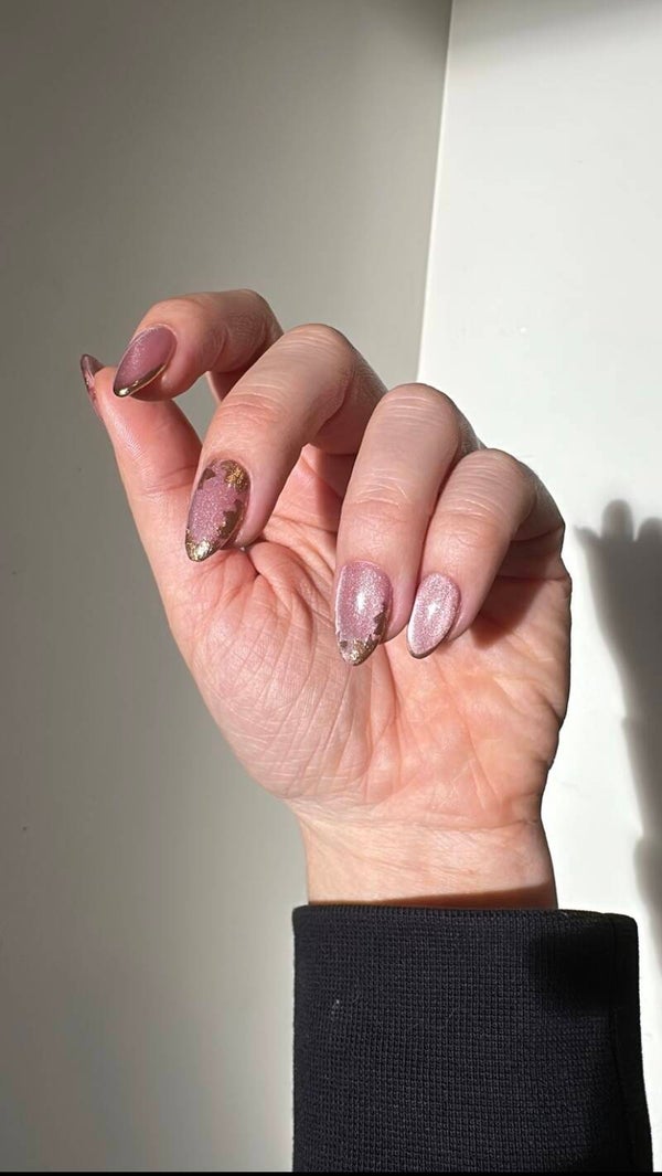 Hold the press-on at a 45° angle to the base of your nail, lightly press down until the press on covers your natural nail.
